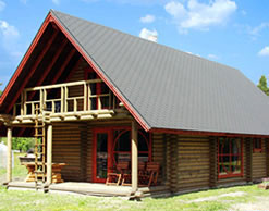 Hirrestä rakennettu asuintalo/sauna valmistui vuonna 2004.